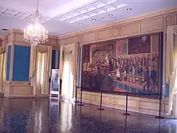 Cabe agregar que en los salones se encuentran diversas obras del chileno Luis Vergara Ahumada, realizadas entre 1957 y 1959 con el asesoramiento del historiador Jorge Lardé y Larín,[14] entre ellas: Primer Grito de Independencia, en Salón Dr. José Matías Delgado; Firma del Acta de Independencia, en Salón de Honor; y El Ocaso de un Sol, en Salón Gral. Manuel José Arce.