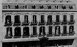 El 24 de abril de 1908 comenzaron los preparativos para la construcción del conocido como "Hotel Madrid", según proyecto del arquitecto del 16 de septiembre del mismo año del ingeniero militar Droctoveo Castañón,[1] firmado el 16 de septiembre con Gregorio Aldudo cómo contratista, Jacob Salama para la viguería de hierro y Rafael Alba para la carpintería.[2] Se abrió a finales de aquel año con un rótulo con su nombre rematando el edificio.[3]