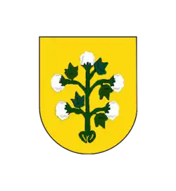 | Blasonamiento | Campo de oro, con una mata arrancada al natural y mostrando algodón en las puntas de las ramas.[1][2] | |