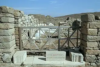 - ↑ a b Stillwell, Richard; MacDonald, William L.; McAllister, Marian Holland (ed.) (1976). «Delos, Greece». The Princeton Encyclopedia of Classical Sites (en inglés) (Princeton, N. J.: Princeton University Press). Consultado el 28 de julio de 2024.