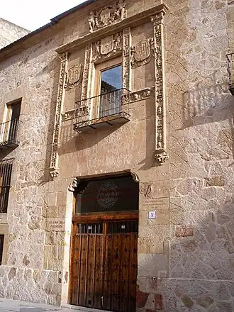 Todo el conjunto está coronado por el escudo de Fonseca, señor del titular de la casa, rodeado por una guirnalda de flores y flanqueado por dos putti. En la actualidad, tras haber servido durante una década como oficinas del Servicio de Orientación Universitaria, el edificio alberga el Centro de Estudios Brasileños de la Universidad de Salamanca.