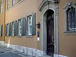 - Planta baja: hacia la derecha de lo que anteriormente fue la puerta principal, detrás de las tres ventanas occidentales, se encuentra la escalera diseñada por Goethe. A la izquierda de la entrada central se encontraba la antigua vivienda del servicio, cuyas salas, además de como zona de taquillas, se utilizan ahora para exposiciones temporales.