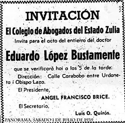 - ↑ Hall, Leonor, “Eduardo López Rivas, un ilustrado de fuste”, Diario Versión Final, edición del 15 de febrero de 2015, Maracaibo, Venezuela