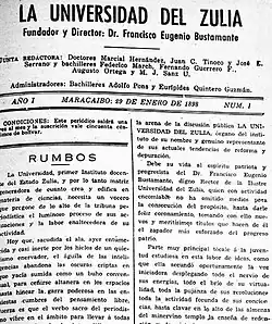El 1 de septiembre de 1897, un nombramiento en la Universidad del Zulia remueve los cimientos de esa casa de estudios y hace temblar a los sectores conservadores de la sociedad marabina. Ese día toma posesión del rectorado uno de los cerebros más brillantes de la Venezuela decimonónica, el médico zuliano Francisco Eugenio Bustamante.[4]