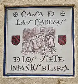 - ↑ Cabezas, Casa de las. «Leyenda de los Siete Infantes de Lara». www.casadelascabezas.com. Archivado desde el original el 12 de octubre de 2018. Consultado el 31 de octubre de 2018.