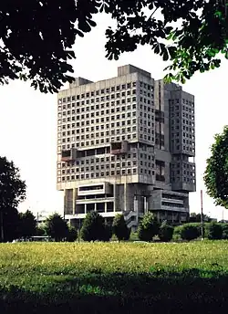 La construcción del que iba a ser el edificio de la administración central del Óblast de Kaliningrado empezó en 1970. Está situado al este del antiguo castillo, cerca del antiguo foso. Colocar la pesada estructura sobre las ruinas causó problemas estructurales, agravados debido a que estaba construido sobre suelo pantanoso.[3] Los cimientos resultaron ser inapropiados para soportar las veintiocho plantas del proyecto original, y por esta razón solo se construyeron veintiuna plantas.[4] Las obras se pararon en 1985 después de que el comité regional del partido perdiera su interés por el proyecto y se quedara sin financiación.[5] En 1992 hubo un intento de completar la construcción con financiación danesa pero fue abandonado, por lo que el edificio se quedó inacabado durante muchos años.