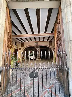 Tras entrar por la puerta principal se accede al amplio zaguán, único elemento que se puede ver a diario desde la calle junto al jardín que se vislumbra en el interior. En sus muros cuelga una importante colección de paneles de cerámica de los siglos XVIII y XIX de estilos barroco y rococó representando imágenes religiosas y profanas, mientras que el suelo es baldosas de guijarro limitadas por otras de color rojo rectangulares y en sus encuentros aparecen baldosas cuadradas de color azulado mientras que en el techo se puede observar la viguería de madera. Desde aquí se accede a la escalera imperial con baranda de hierro forjado en cuyo arranque hay dos columnas de fundición con sendos globos de cristal para iluminar el espacio, las contrahuellas y el arrimadero de la escalera escalera, están decorados con azulejos de estilo neoclásico con formas vegetales fabricados entre 1850 y 1860 cuyo dibujo representa un tallo fino horizontal del que surgen hojas azules y acantos morados.[6] Desde ellas se pasa al vestíbulo, un espacio que da acceso a las demás estancias de la planta principal, dejando a mano izquierda las principales que recaen a la fachada y a mano derecha las privadas y de servicio que recaen al jardín; esta estancia se decora en su pavimento con una combinación de diversos azulejos fabricados en Onda del mismo estilo que los de la escalera, mientras que de sus paredes cuelgan diversas tallas de madera representando los escudos de armas de las diferentes ramas de la familia.