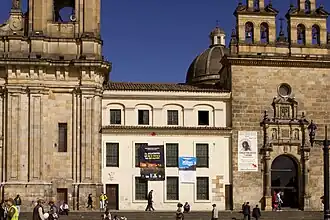 ![]() Casa del Cabildo Eclesiástico, a los lados se encuentran la Catedral Basílica Metropolitana de Bogotá y Primada de Colombia y la Capilla del Sagrario de la Catedral Basílica Metropolitana. | ||