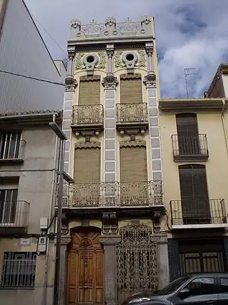 Se trata de un edificio construido siguiendo el estilo modernista valenciano[3] y está considerado como uno de los edificios más destacados de la localidad. Consta de planta baja, dos alturas y ático con dos pequeños óculos. Destaca en el edificio la profusa ornamentación de tipo floral típicamente modernista que se halla tanto en la fachada, en el enrejado que ornamenta los balcones o en la cuidada carpintería interior.