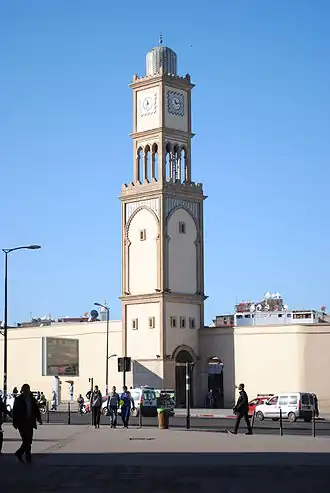 Plaza Mohammed V: con sus fachadas de inspiración andalusí y su entrada a la ciudad antigua coronada con una torre de inspiración toscana