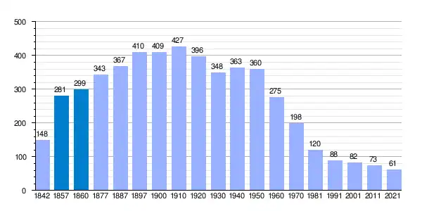 | Gráfica de evolución demográfica de Casafranca[4] entre 1842 y 2021 |