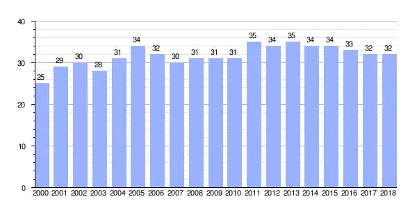 | Gráfica de evolución demográfica de Casal entre 2000 y 2018 |