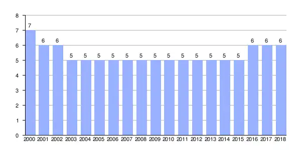| Gráfica de evolución demográfica de Casal de Arriba entre 2000 y 2018 |