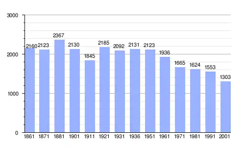 | Gráfica de evolución demográfica de Casalbuono entre 1861 y 2001 |