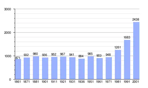 | Gráfica de evolución demográfica de Casalmaiocco entre 1861 y 2001 |
