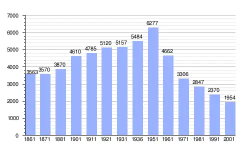 | Gráfica de evolución demográfica de Casalnuovo Monterotaro entre 1861 y 2001 |