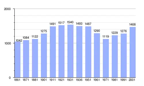 | Gráfica de evolución demográfica de Casalromano entre 1861 y 2001 |