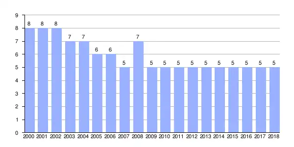 | Gráfica de evolución demográfica de Casanova entre 2000 y 2018 |