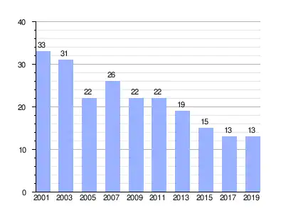 Población de derecho (2000-2019) según los censos de población del INE a 1 de enero de cada año.[4] |