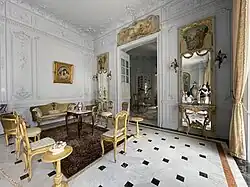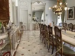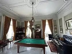 "las casas de cuatro pisos estaban estructuradas alrededor de una altura central triple (cubierta por un tragaluz) alrededor de la cual se agrupaban las diversas habitaciones y una gran escalera principal, y que servían (gracias a dos escaleras adicionales) para los cuartos de servicio en el semisótano. Las fachadas son de un diseño claro de Beaux-Arts en el estilo del Segundo Imperio y podrían haber sido diseñadas para encajar cómodamente en el Bulevar Saint Germain o los Campos Elíseos de París [...] Alrededor del gran espacio central, el Gran Salón, se distribuyen los diversos salones, la biblioteca, el comedor y la sala de juegos (sala de billar) en la planta principal."[5]