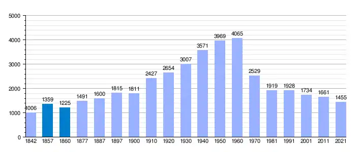 Gráfica de evolución demográfica de Casas de Don Pedro[5]​ entre 1842 y 2021