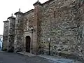 Los muros se encuentran reforzados con contrafuertes cilíndricos en la cabecera y con estribos prismáticos en la nave. Al fondo de la nave se encuentra un coro elevado sobre un arco escarzano, un tipo de arco rebajado simétrico que consiste en un sector circular que posee su centro por debajo de la línea de impostas.
