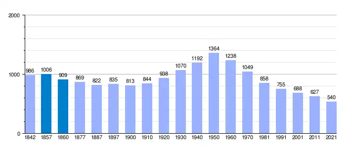 | Gráfica de evolución demográfica de Casas del Castañar[5] entre 1842 y 2021 |