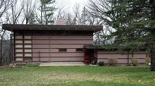 - ↑ a b c d e Nelson, Wendell (2 de noviembre de 2002). «Frank Lloyd Wright house resides in Plover». The Portage County Gazette. Archivado desde el original el 4 de enero de 2003. Consultado el 30 de abril de 2009.