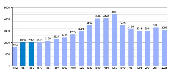 Cuenta con una población de 3205 habitantes (INE 2024). Se reparte la población total entre 1634 hombres y 1571 mujeres. El desglose por edades es la siguiente: [13]