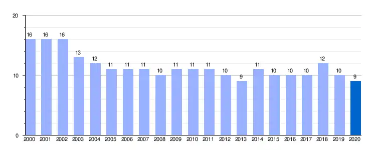 | Gráfica de evolución demográfica de Casavegas entre 2000 y 2020 |
