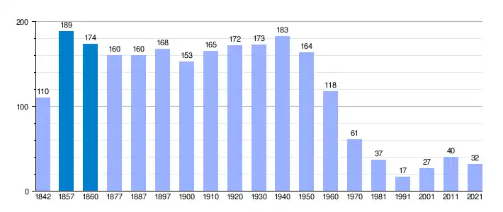 | Gráfica de evolución demográfica de Cascajares de la Sierra[4] entre 1842 y 2021 |
