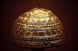 Se trata de una posible sombrero ritual, que por su forma, decoración y cronología ha sido comparado con los cuencos del Tesoro de Villena (Alicante) y los Cuencos de Axtroki.[1]