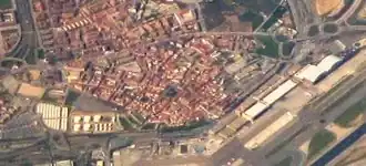 Localización del barrio de Casco Histórico de Barajas en el distrito de Barajas (rosa) y el municipio de Madrid (gris)