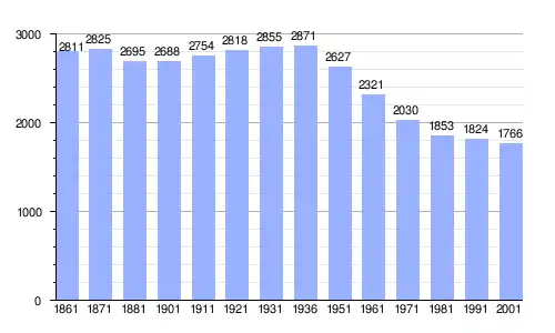 | Gráfica de evolución demográfica de Caselle Landi entre 1861 y 2001 |