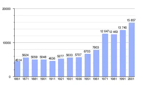 | Gráfica de evolución demográfica de Caselle Torinese entre 1861 y 2001 |