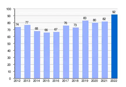 | Gráfica de evolución demográfica de Casarones entre 2012 y 2022 |