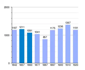 | Gráfica de evolución demográfica de Casillas del Angel[5] entre 1842 y 1920 |