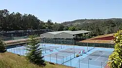 Las instalaciones deportivas están situadas en Mourente[9] y cuentan con un pabellón, doce pistas de tenis (siete al aire libre, dos de tierra batida cubiertas y tres cubiertas en el pabellón), un campo de fútbol sala (en el interior del pabellón), un campo de fútbol de tierra batida que también está dedicado al tiro con arco, dos campos de arena para fútbol y voleibol, tres pistas de pádel,[10] una pista de baloncesto, una debalonmano y tres piscinas (una olímpica, una mediana y una pequeña) con puesto de socorrismo. Además cuenta con diferentes zonas de ocio y descanso, entre las que destacan un parque infantil, una cafetería-restaurante, barbacoas al aire libre, una zona del pabellón acondicionada para ping pong y una casa de campamentos con literas y una zona de acampada anexa. El edificio de la cafetería[11] alberga las oficinas de atención a los socios, una sala de juegos, una sala de ceremonias, una cancha de squash, un gimnasio y los vestuarios y aseos.