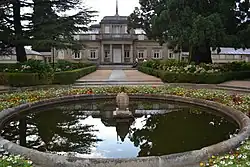 Está rodeada por dos jardines, uno en la parte delantera y otro en la trasera, comunicados entre sí por dos pórticos de columnas toscanas. El gusto palaciego de la época está presente en sus fuentes, estanques, cascadas, paseos y setos de boj. A ello se añade la existencia de un extenso parque a su alrededor, poblado por especies autóctonas, como el roble y la encina; alóctonas, como la sequoya y el pinsapo; y árboles típicos de jardines.