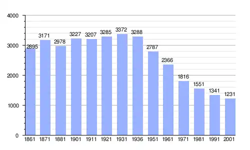 | Gráfica de evolución demográfica de Casola in Lunigiana entre 1861 y 2001 |