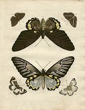 - ↑ a b See p. 5 de Natuurlyke [..] afbeeldingen en beschryvingen der Cicaden.