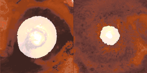 - ↑ «Mars polar cap mystery solved». Spaceref.com. Archivado desde el original el 7 de marzo de 2023. Consultado el 28 de diciembre de 2019.