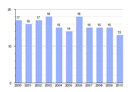 Población de derecho (2000-2010) según los censos de población del INE a 1 de enero de cada año.[7] |