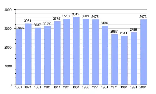 | Gráfica de evolución demográfica de Castel Guelfo di Bolonia entre 1861 y 2001 |