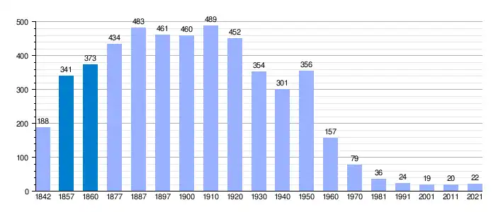 Gráfica de evolución demográfica de Castell de Cabres[1] entre 1842 y 2021