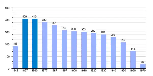 | Gráfica de evolución demográfica de Mur[4] entre 1842 y 1970 |