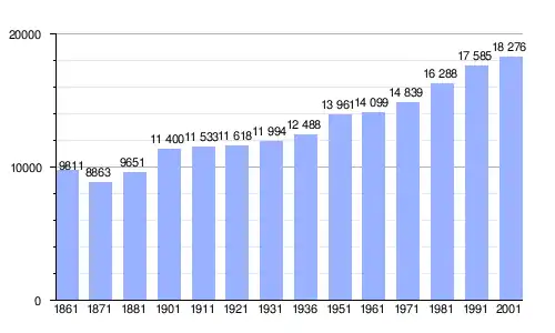 | Gráfica de evolución demográfica de Castellana Grotte entre 1861 y 2001 |
