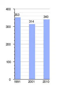| Gráfica de evolución demográfica de Castellanos entre 1991 y 2010 |