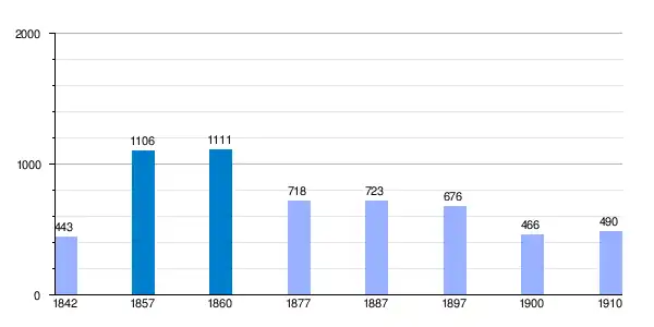 | Gráfica de evolución demográfica de Castellbó[4] entre 1842 y 1910 |