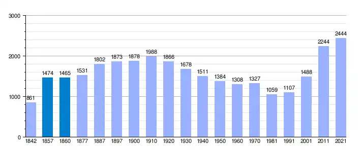 | Gráfica de evolución demográfica de Castellet y Gornal[5] entre 1842 y 2021 |